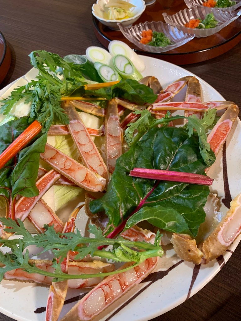 昼食をとって、すぐにお宿へ。カニが有名でぎりぎり食べられる時期で、もうびっくり仰天の蟹三昧の料理で、こんなに食べた事ないくらい贅沢な1日となりました。女子会がいいのは、知らない土地の旬のおいしい物を食べられるということ。どうしても家族旅行だと安いところを探してしまうのでこんな贅沢はできません。