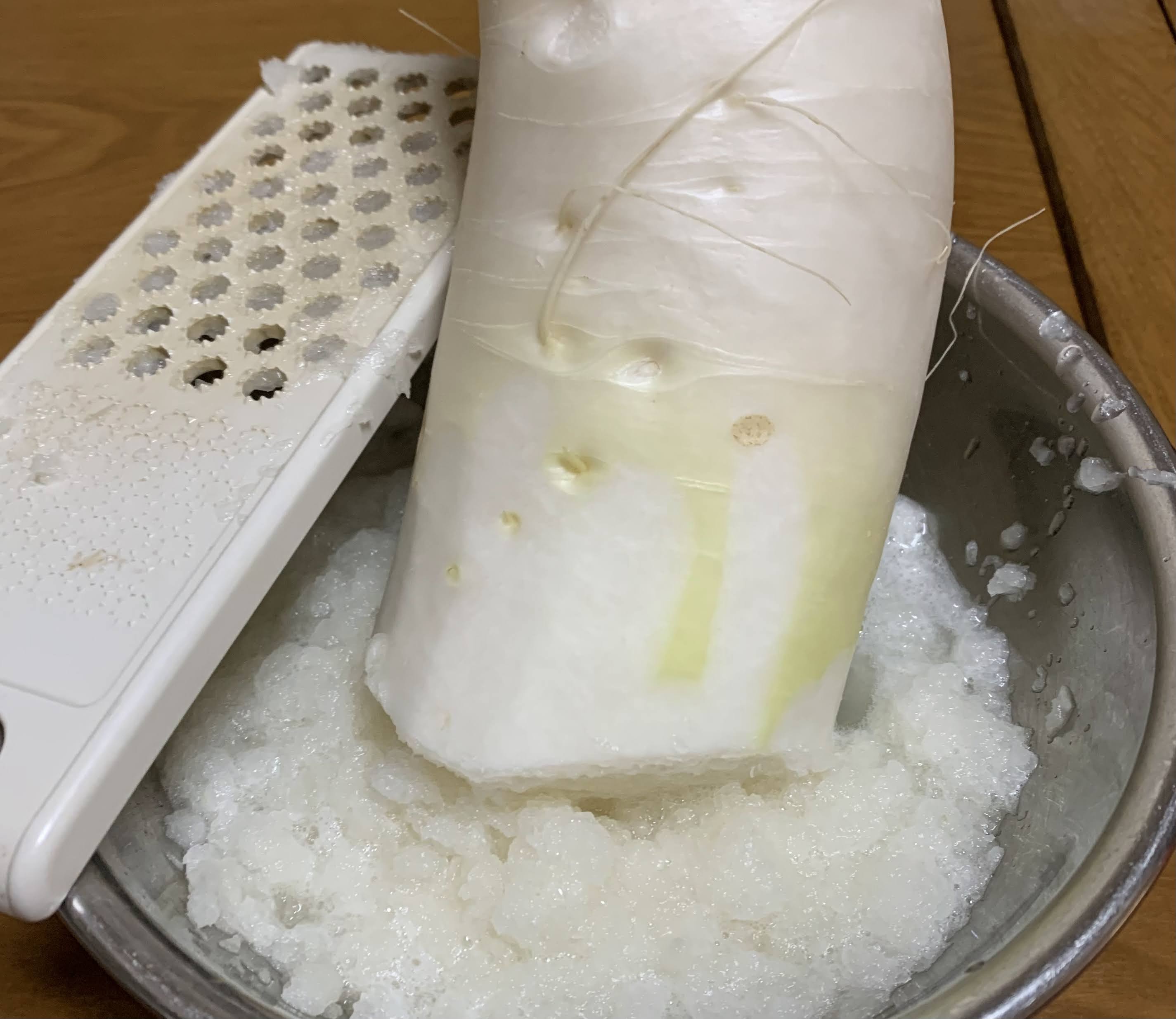 やっぱり生で大根おろしでしょー。味はもう甘くて、水分たっぷりで💯