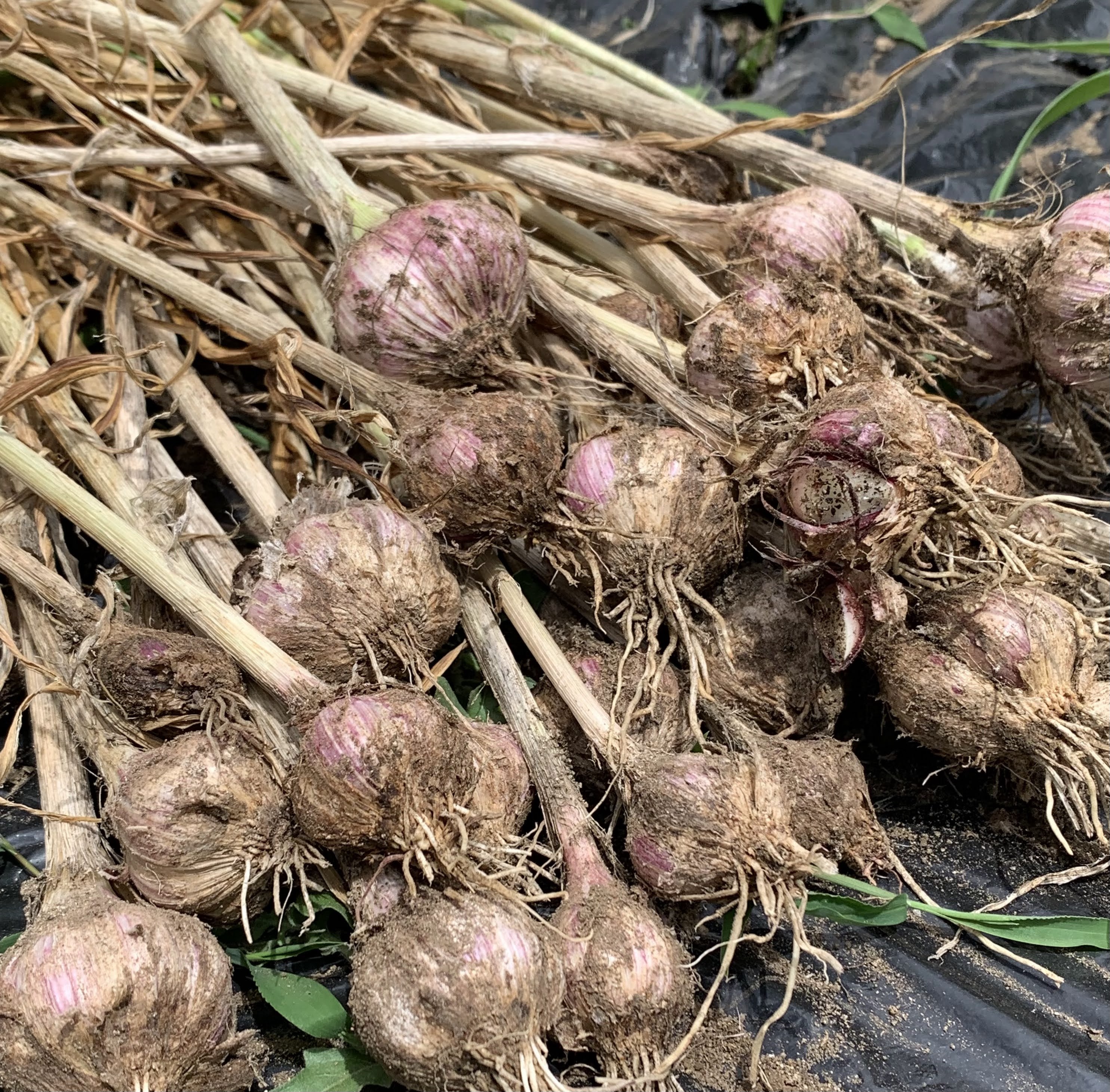 モ🥔の収穫を紹介してきたのですが、最後ににんにくです🧄私もとしちゃんも大