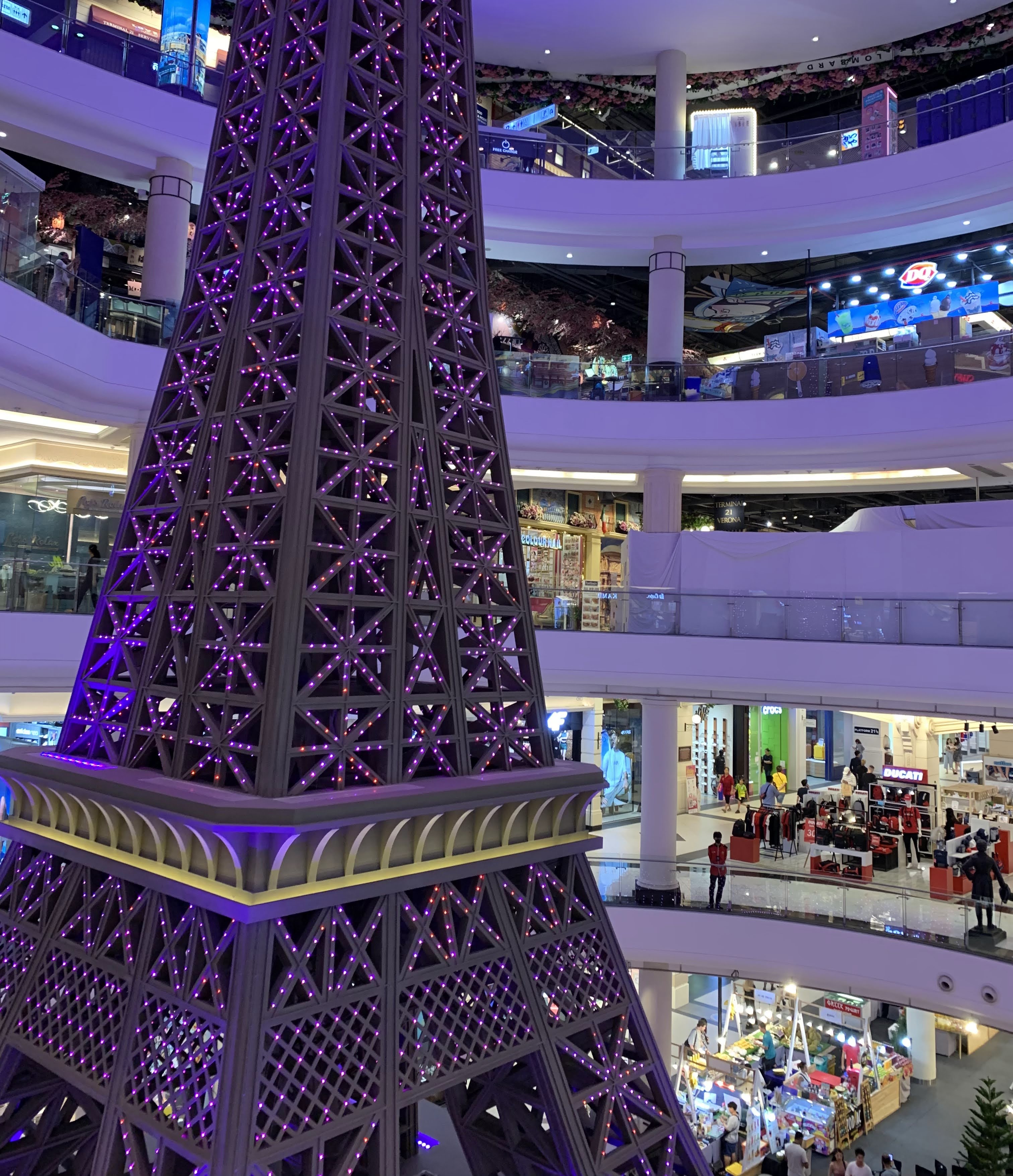 🔽どこからのアングルがこの広さを伝えられるかわからない。いろんな国をイメージしていて、東京、サンフランシスコ、パリなど。お国にちなんだオブジェとか、お店作り。ドドーンとエッフェル塔がそびえたつ💫💫