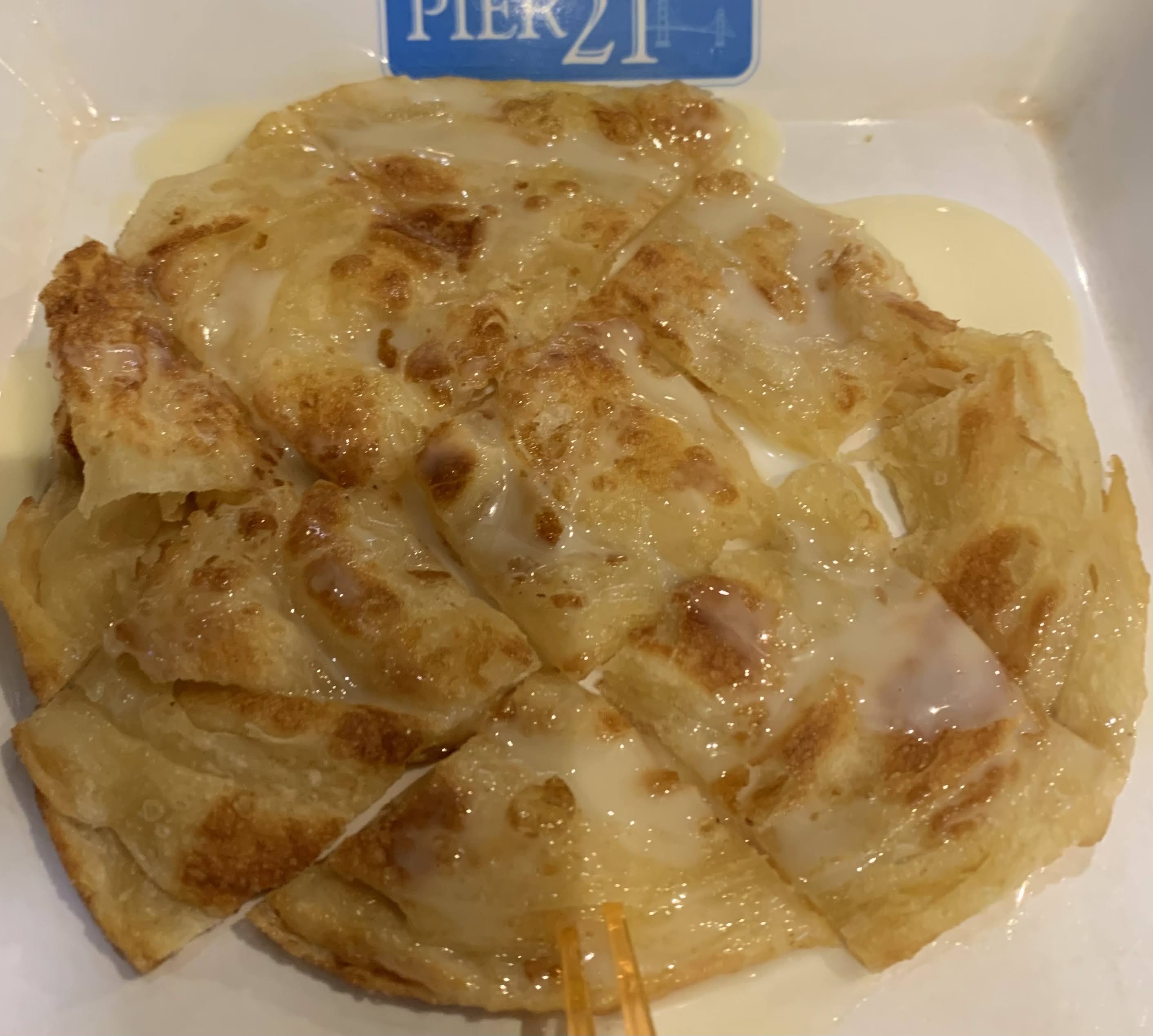 🔽これで¥60 何度も値段確認😮一番安かったタイのスィーツロッティ。カリッと焼いたクレープに練乳かけた…みたいな。生地と生地との間にバナナが挟んであるものも。甘いので二人で食べてちょうどよかった。