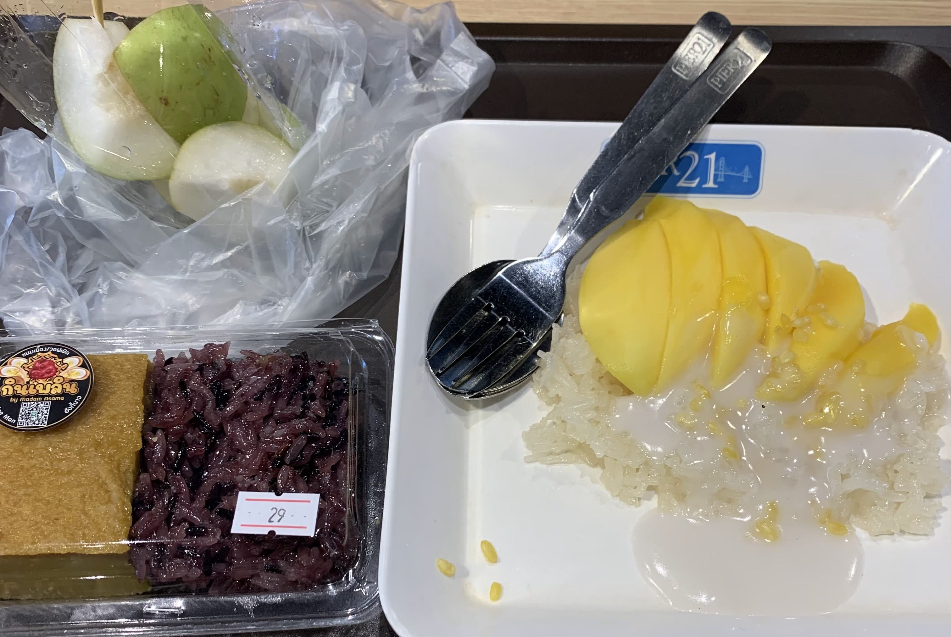 選んだものには辛いものはなく、美味しかった。エビもプリプリ。もち米の上にマンゴーとココナッツミルクがかかっている有名な食べ物は好みが分かれると知り挑戦…私はダメでした😅次回リベンジ!