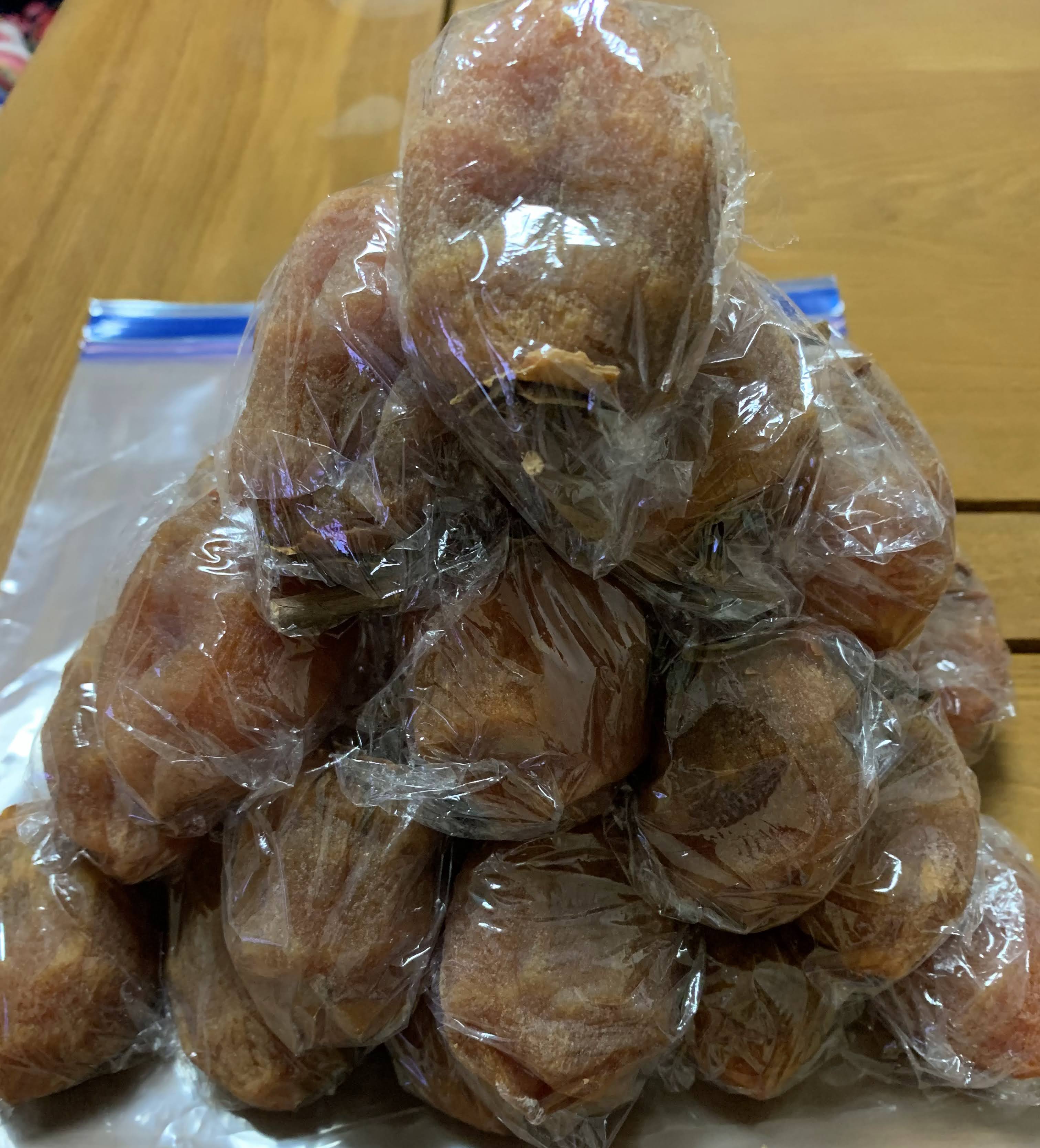 できた干し柿は冷凍庫で保存。カチカチにならないので食べたい時に出して少し待っていれば食べられる😋