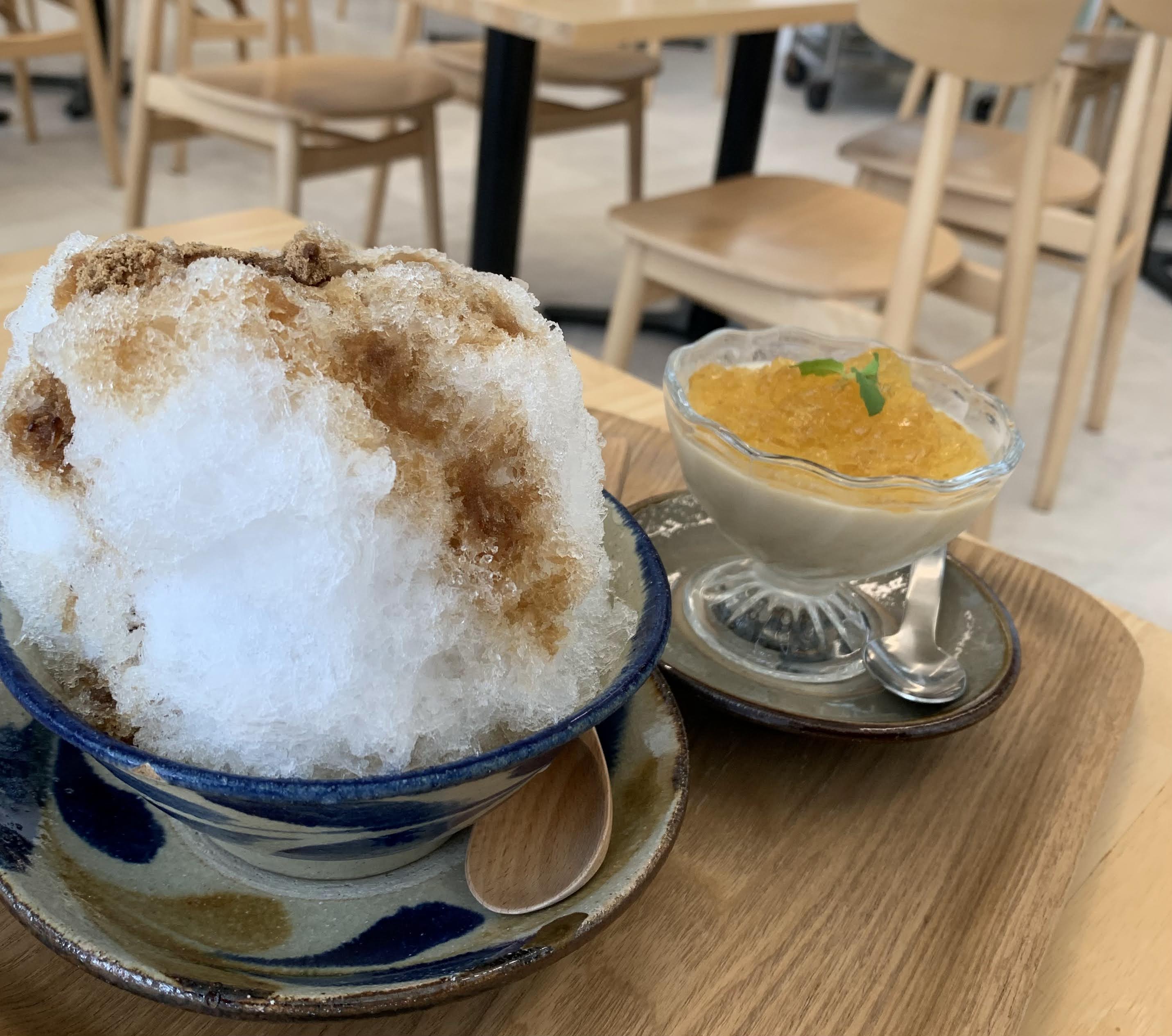 黒糖ぜんざい¥600 さんぴん茶プリン¥380