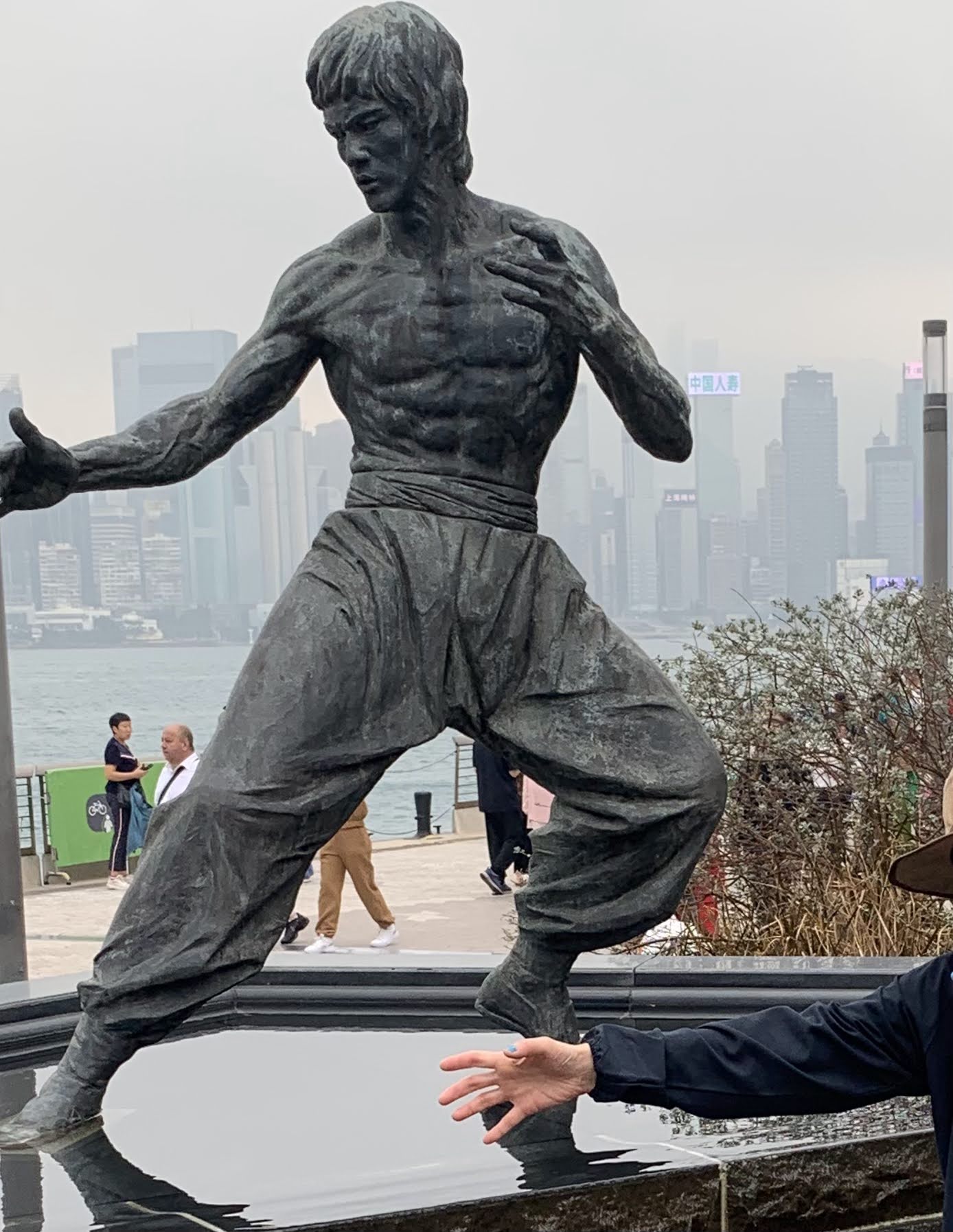 目的のブルースリーの銅像でパチリ📸写り込んでいるこの手で察しがつくでしょう?