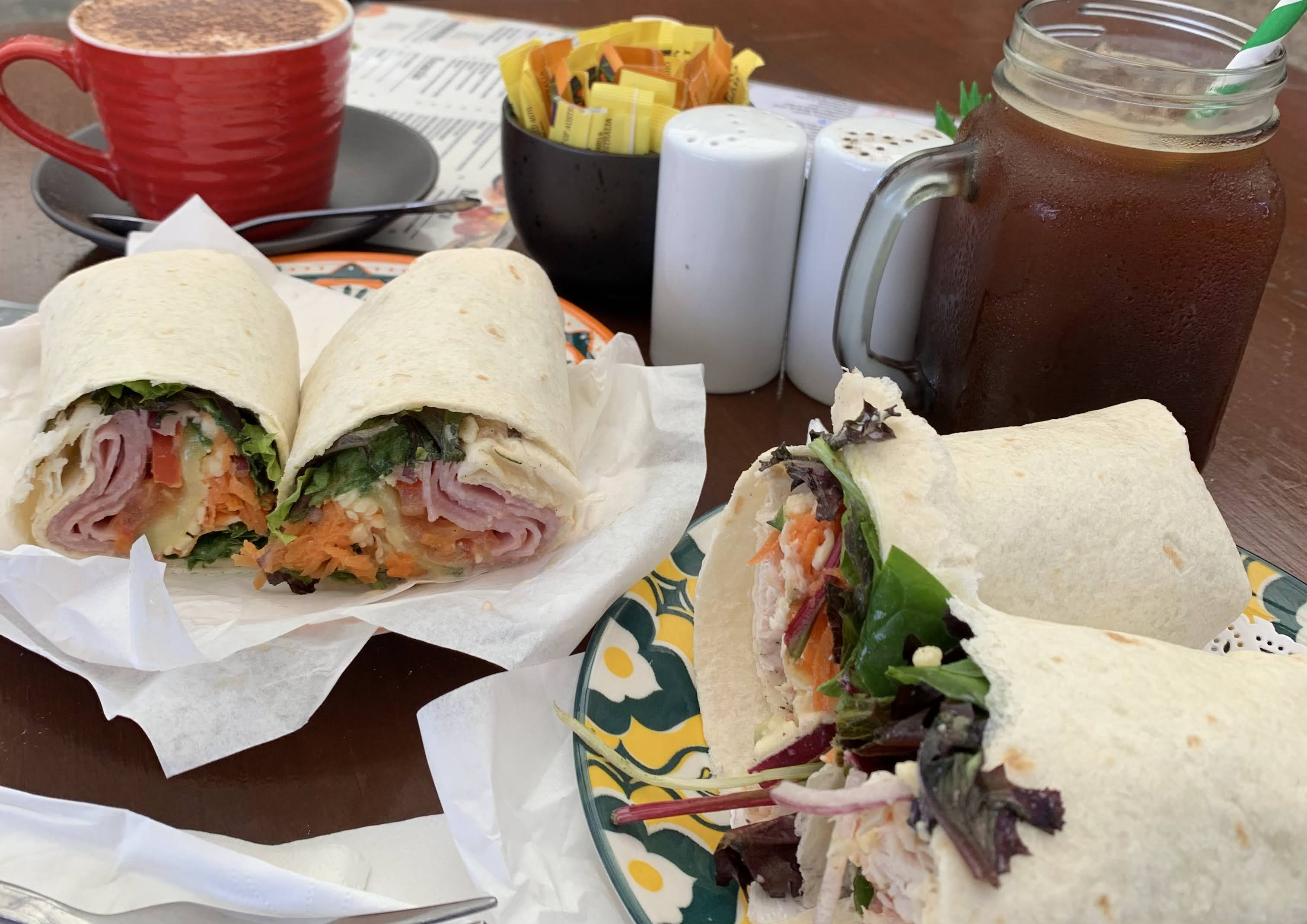 ハム&サラダ・チキンサラダ各¥1350・カプチーノ¥480・アイスブラック¥630計¥3810(2024/6月)