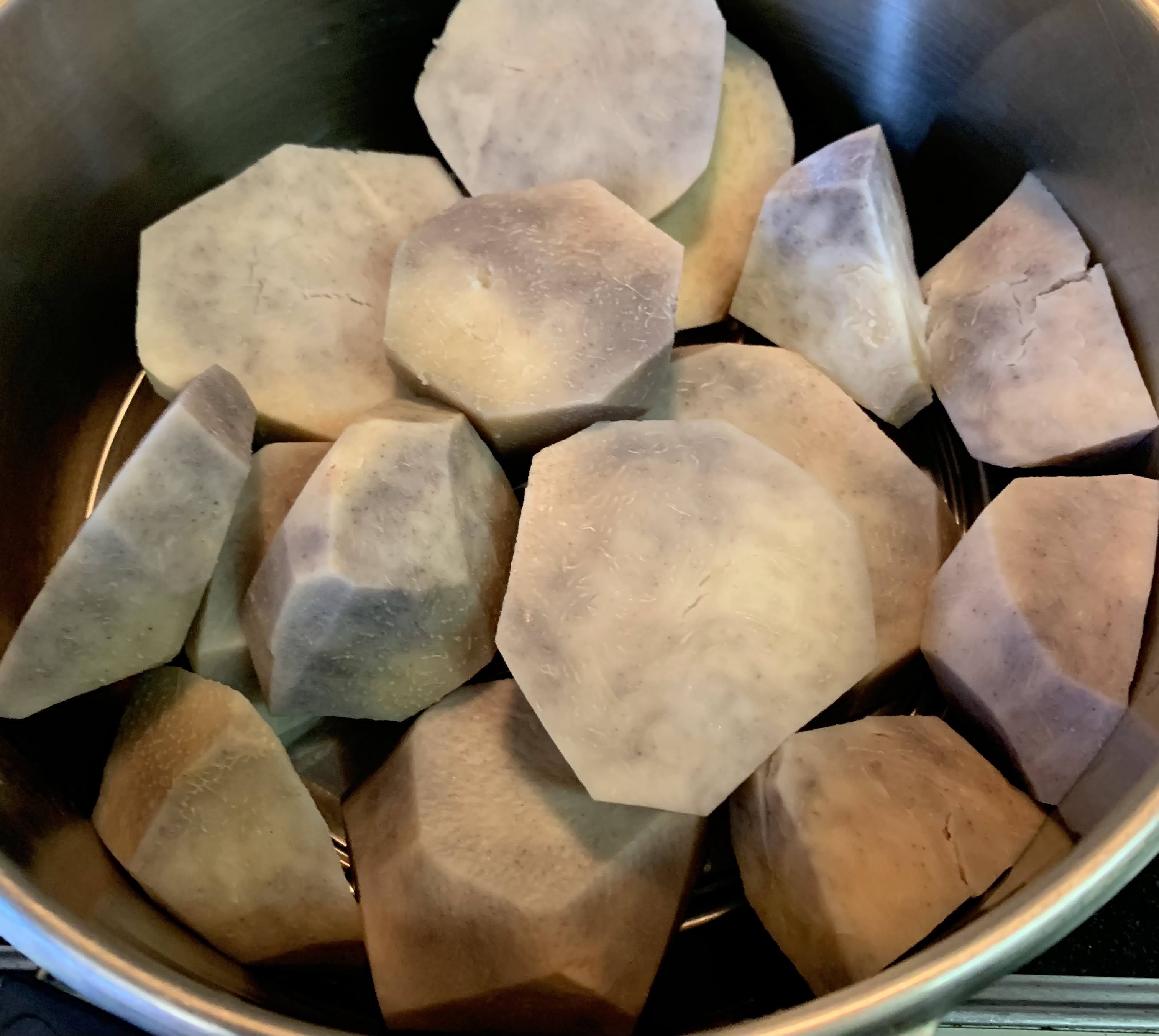 🔽親芋の皮剥くと本当に里芋の塊がドンとある。