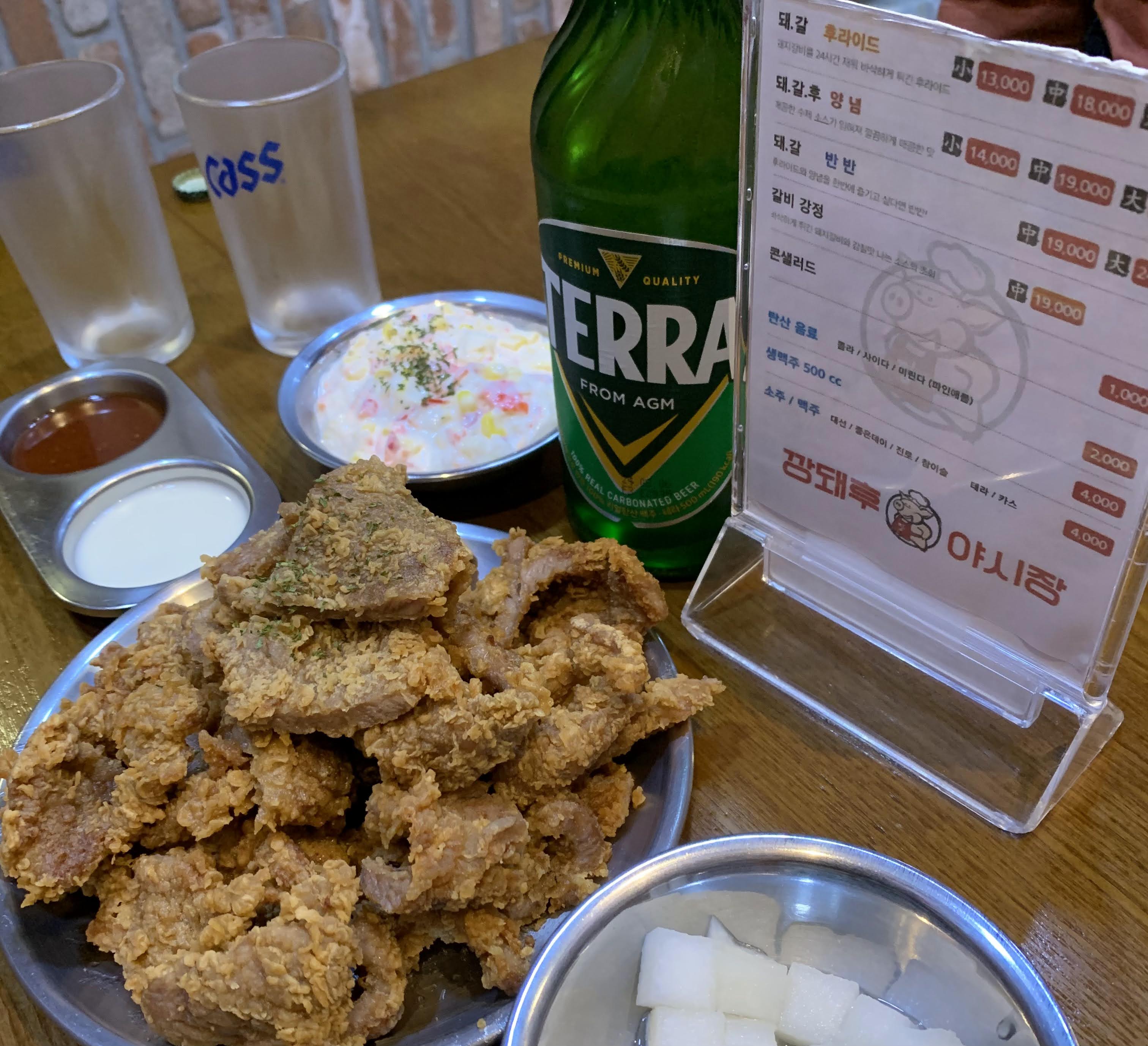 どうやら、豚のカルビに衣をつけて揚げたもののようで、トンカツ?なのか?と思って食べると全然違う…