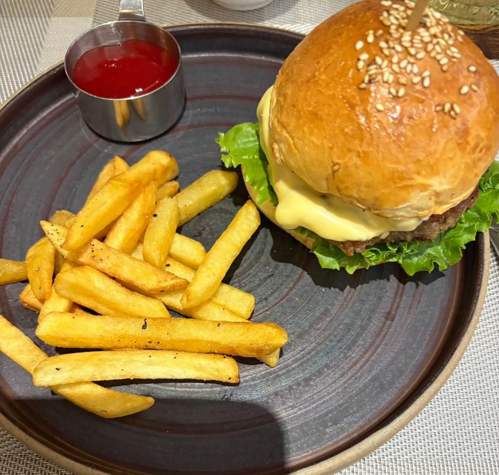 トロッと溶けいて濃厚な味のチーズ‼肉肉しいハンバーグでポテトもうまい‼️