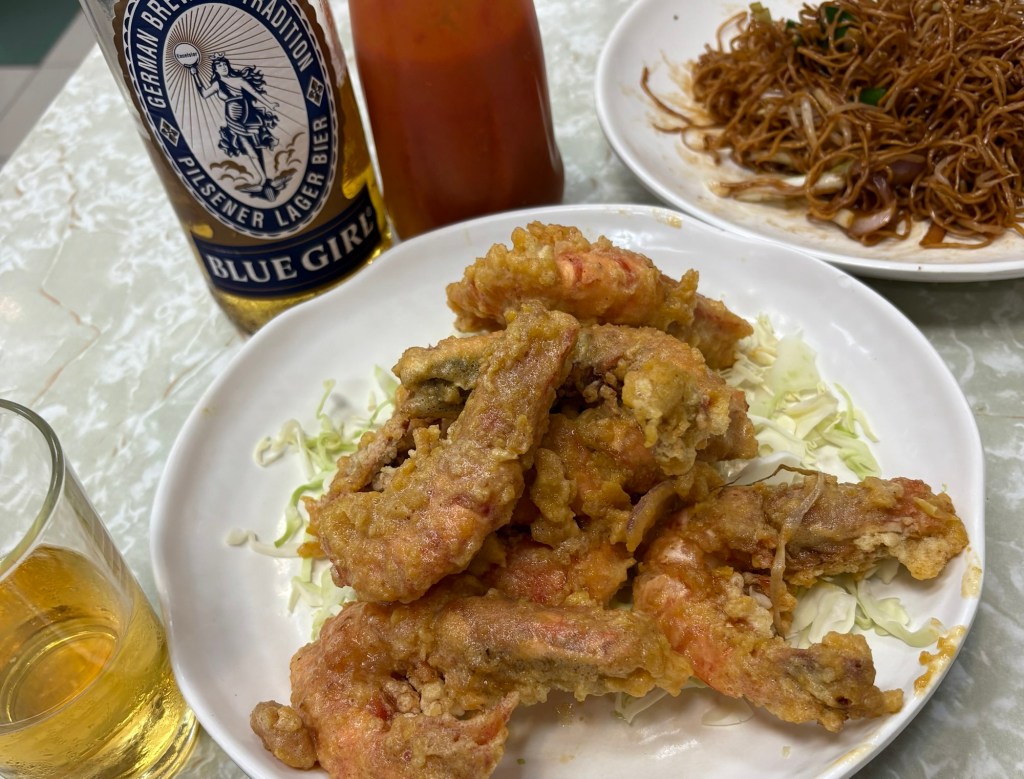 🔽(二日目)前日の焼きそば、また注文❗少しお高めエビの丸揚げも‼