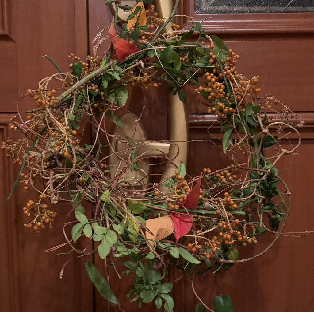 ⬇️庭掃除して伸びてた、よくわからない木にからまってたコレは、リースに飾ってるやつ❓と思い